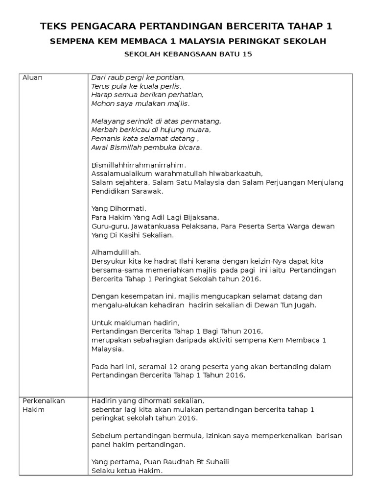 Teks Ucapan Pertandingan Bercerita By Da_Ellie43 29 Mar, 2022 Post a Comment Kamu Telah Memasuki Satu Pertandingan Bercerita Pdf Doc Teks Mc Pertandingan Bercerita Mtq Zon Klias 2015 Nur Alia Academia Edu Teks Pengacara Majlis Pertandingan Bercerita Pdf Teks Pengacara Pertandingan Bercerita Tahap 1 Pdf Share No comments for "Teks Ucapan Pertandingan Bercerita"